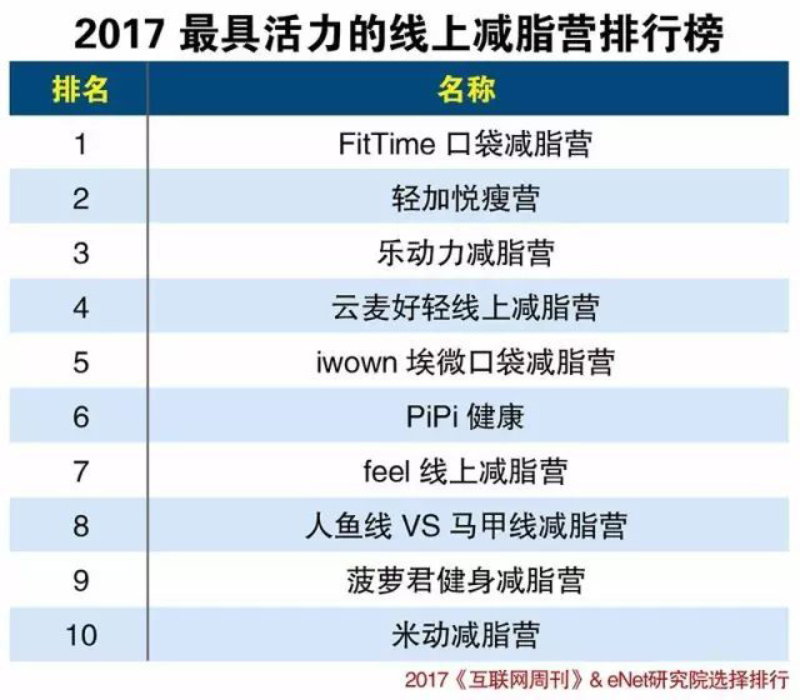 3.2017在線減脂平臺排行榜